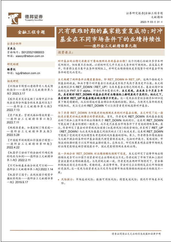 业绩持续性 对冲基金 市场条件 投资研究 金融工程