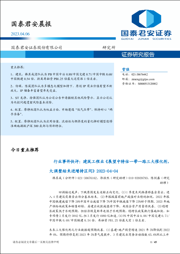 【国泰君安证券】【20230406】晨报-20230404-国泰君安证券-45页
