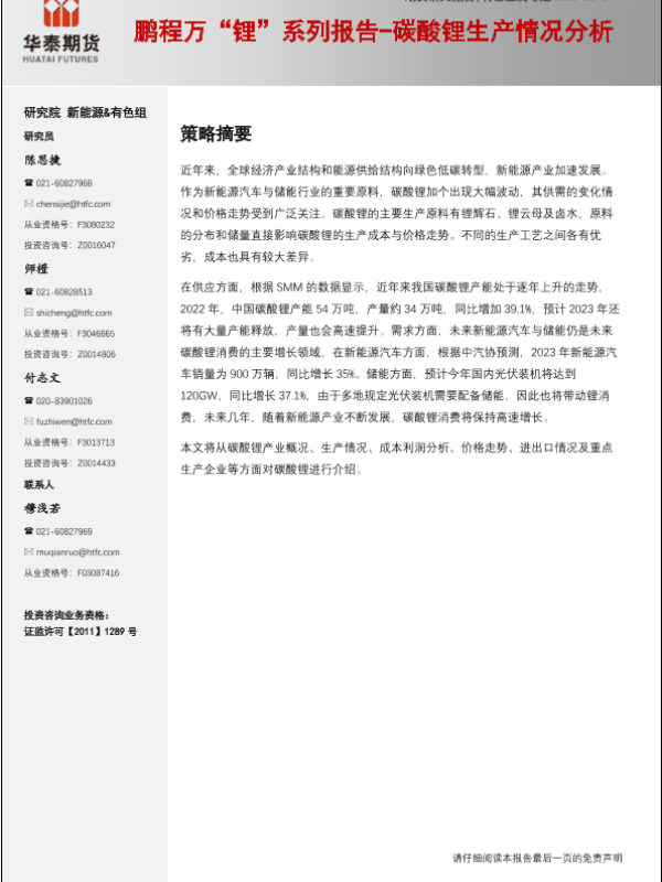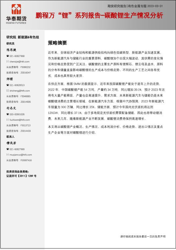 【华泰期货】【20230331】有色金属专题:鹏程万“锂”系列报告_碳酸锂生产供应情况分析-24页