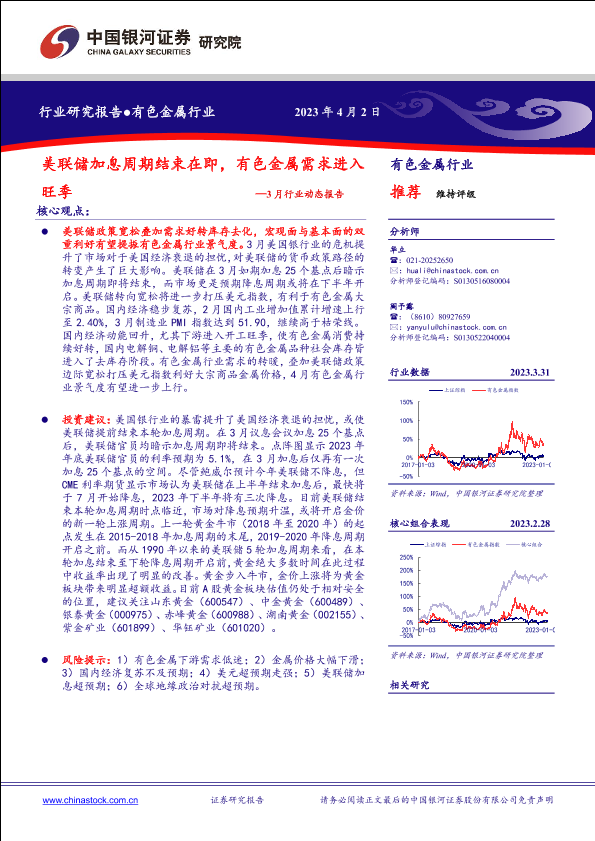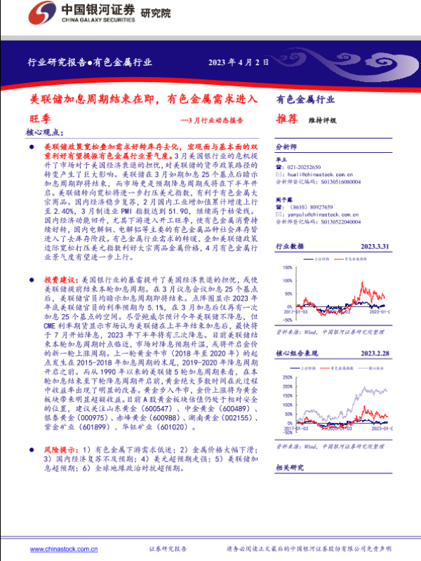 【银河证券】【20230402】有色金属行业3月行业动态报告:美联储加息周期结束在即,有色金属需求进入旺季-24页