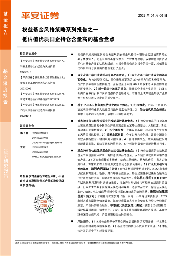 【平安证券】【20230406】权益基金风格策略系列报告之一:低估值优质国企持仓含量高的基金盘点-23页