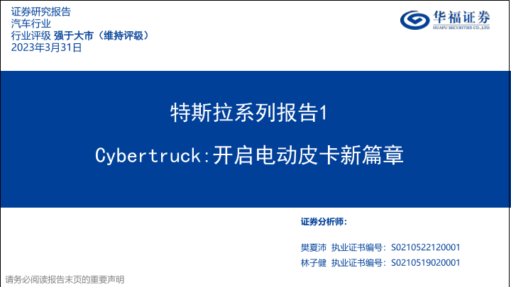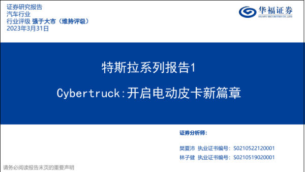 【华福证券】【20230331】汽车行业特斯拉系列报告1:Cybertruck,开启电动皮卡新篇章-29页