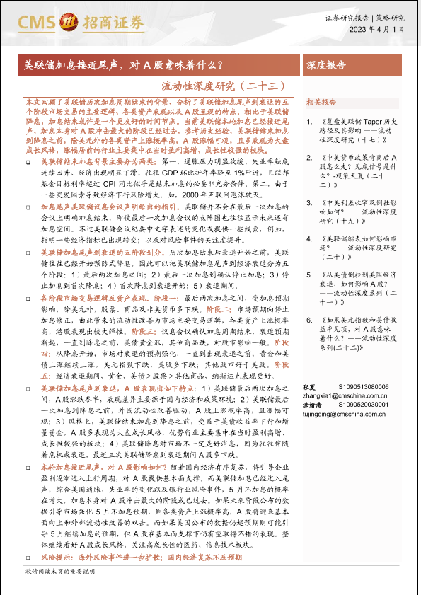 【海通证券】【20230401】流动性深度研究(二十三):美联储加息接近尾声,对A股意味着什么?-22页