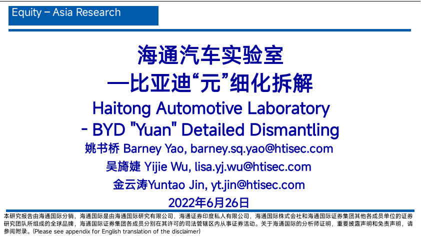 【海通国际】【20230404】海通拆车实验室:比亚迪元EV-拆车报告-87页