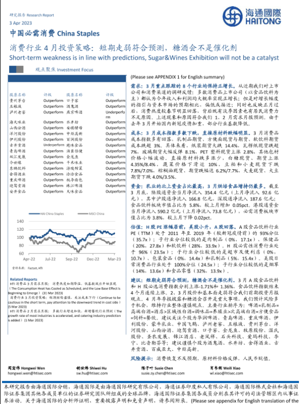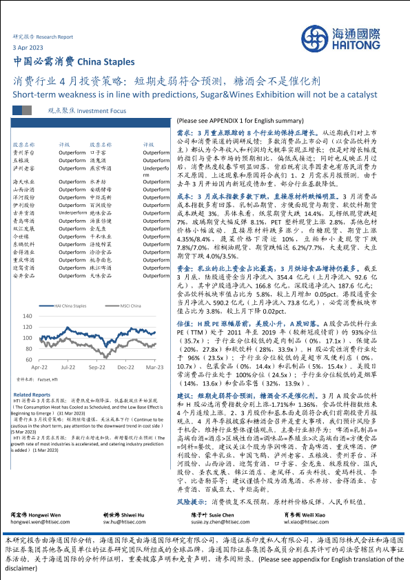 【海通国际】【20230405】消费行业4月投资策略:短期走弱符合预测,糖酒会不是催化剂-46页