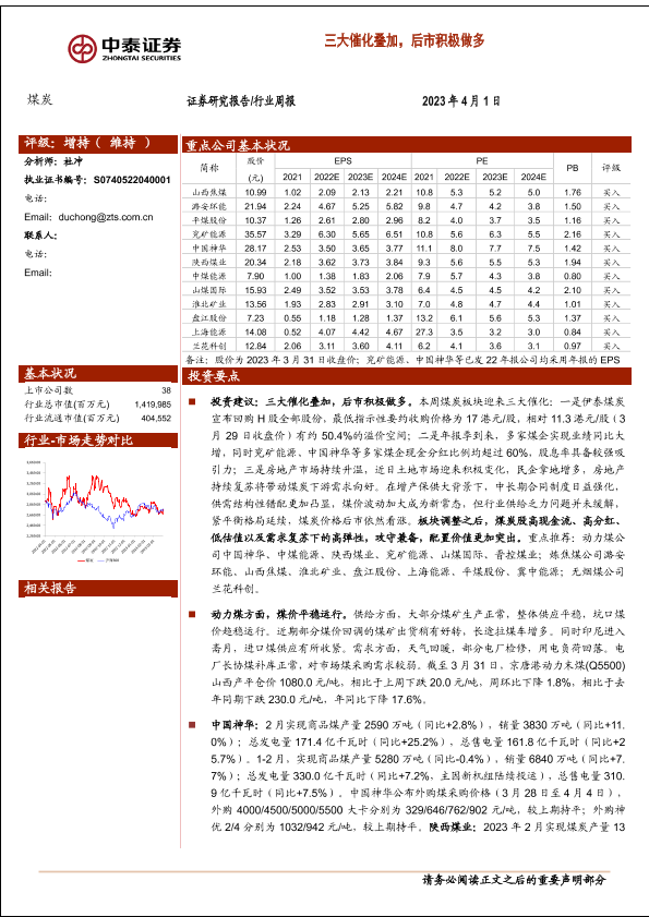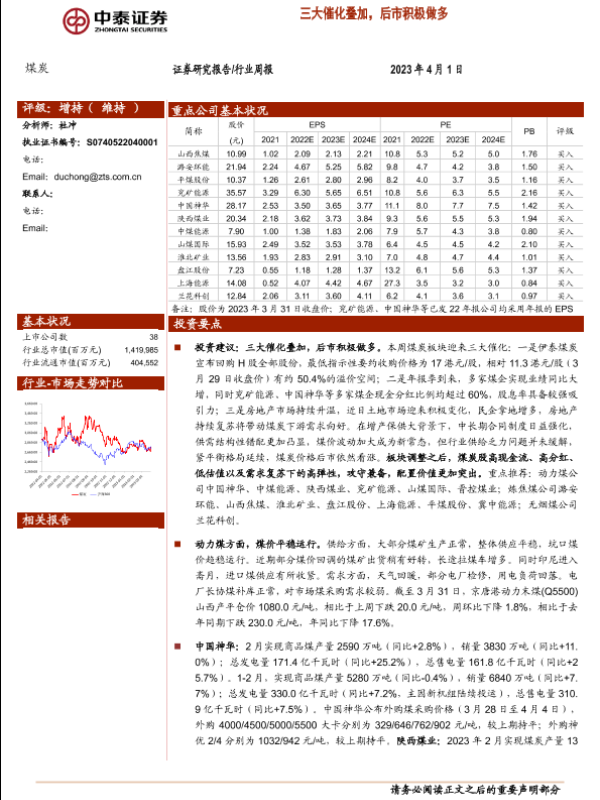 【中泰证券】【20230401】煤炭行业周报:三大催化叠加,后市积极做多-27页