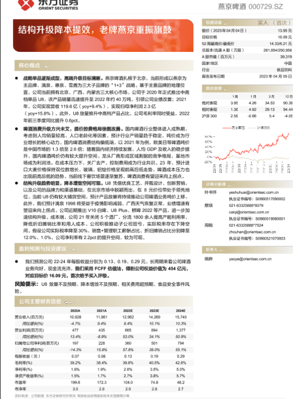 【东方证券】【20230404】燕京啤酒(000729)结构升级降本提效,老牌燕京重振旗鼓-33页