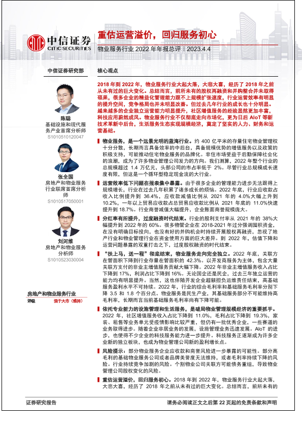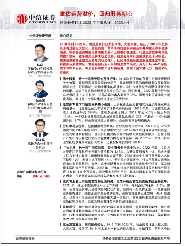 【中信证券】【20230404】物业服务行业2022年年报总评:重估运营溢价,回归服务初心-23页