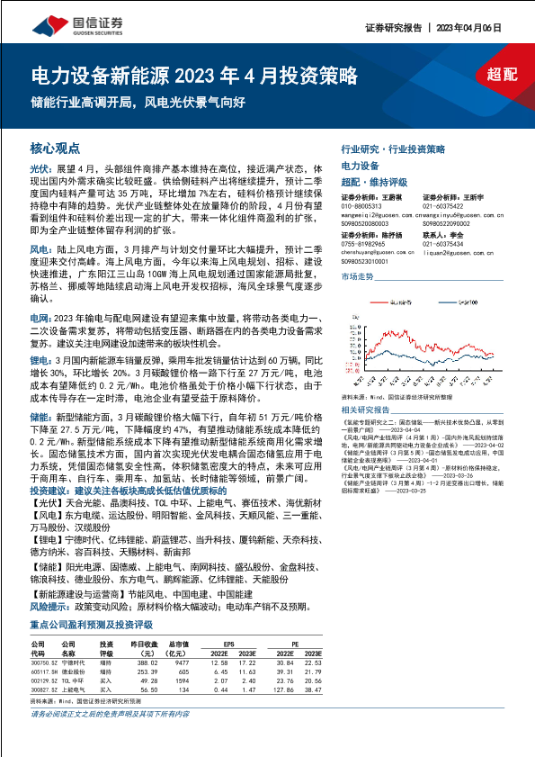 【国信证券】【20230406】电力设备新能源2023年4月投资策略:储能行业高调开局,风电光伏景气向好-33页