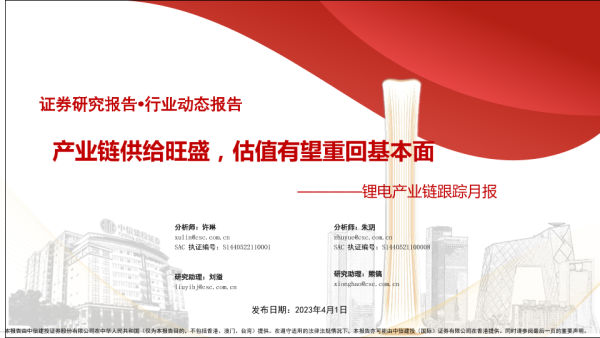 【中信建投证券】【20230401】电力设备新能源行业锂电产业链跟踪月报:产业链供给旺盛,估值有望重回基本面-54页