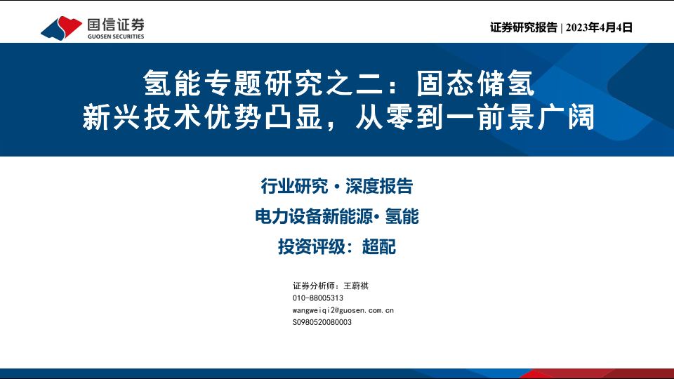【国信证券】【20230404】电力设备新能源行业氢能专题研究之二:固态储氢,新兴技术优势凸显,从零到一前景广阔-38页