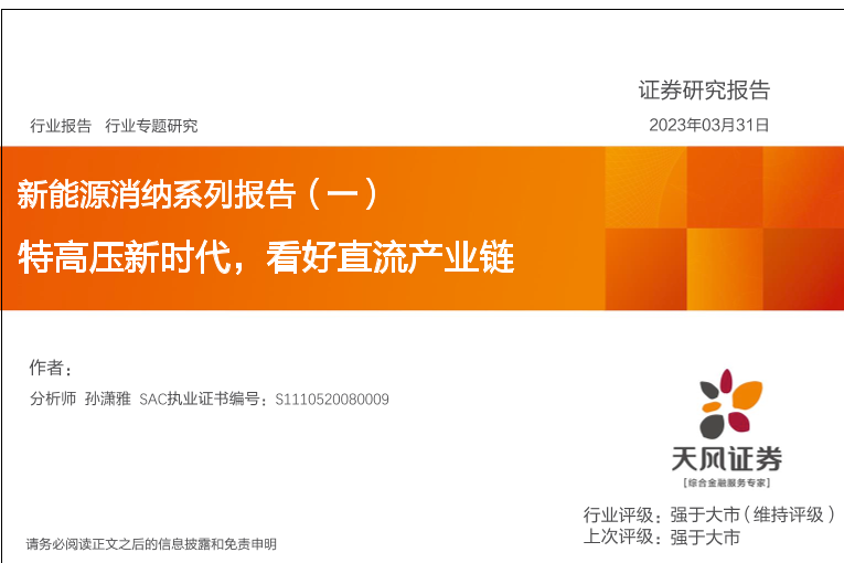 【天风证券】【20230331】电力设备行业新能源消纳系列报告(一):特高压新时代,看好直流产业链-31页