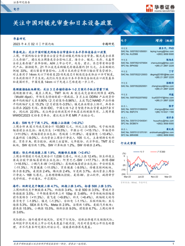 【华泰证券】【20230402】电子行业专题研究:关注中国对镁光审查和日本设备政策-38页