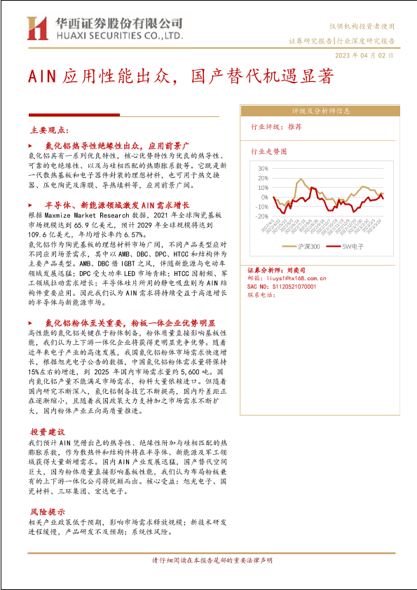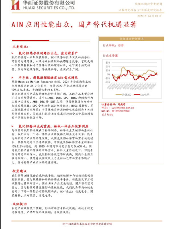 【华西证券】【20230402】电子行业:AlN应用性能出众,国产替代机遇显著-40页