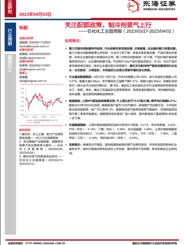 【东海证券】【20230403】石化化工主题周报:关注配额政策,制冷剂景气上行-25页