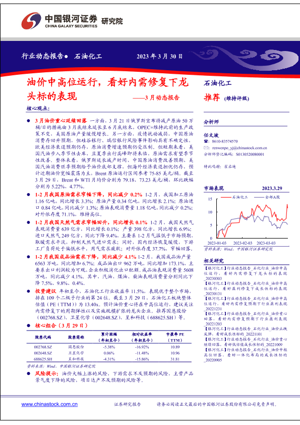 【银河证券】【20230330】石油化工3月动态报告:油价中高位运行,看好内需修复下龙头标的表现-23页