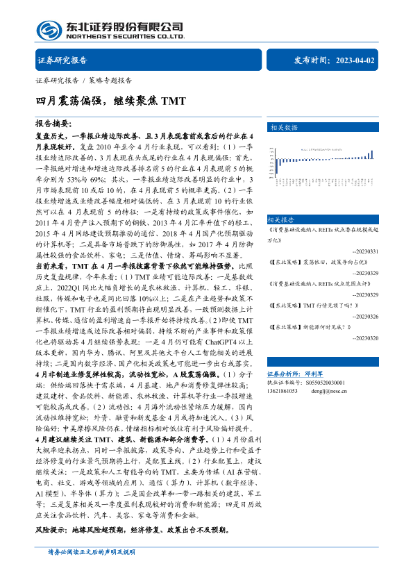 【东北证券】【20230402】策略专题报告:四月震荡偏强,继续聚焦TMT-31页