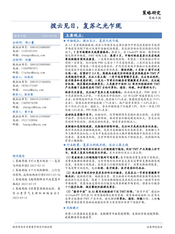 【华安证券】【20230402】策略月报:月度报告拨云见日,复苏之光乍现-21页