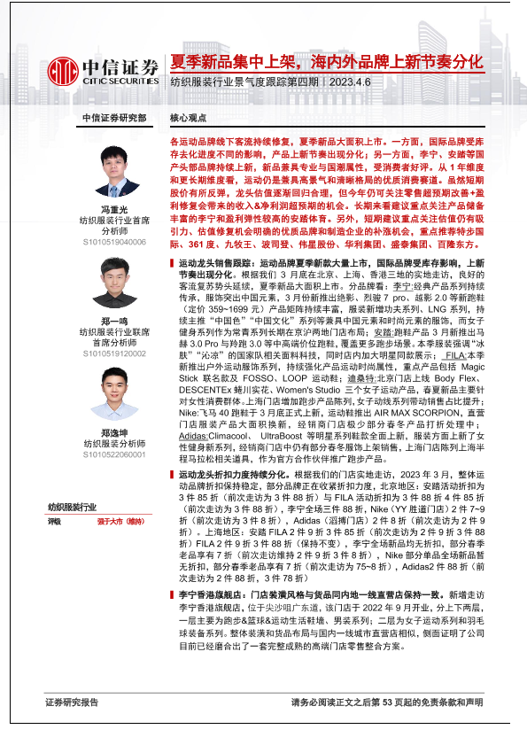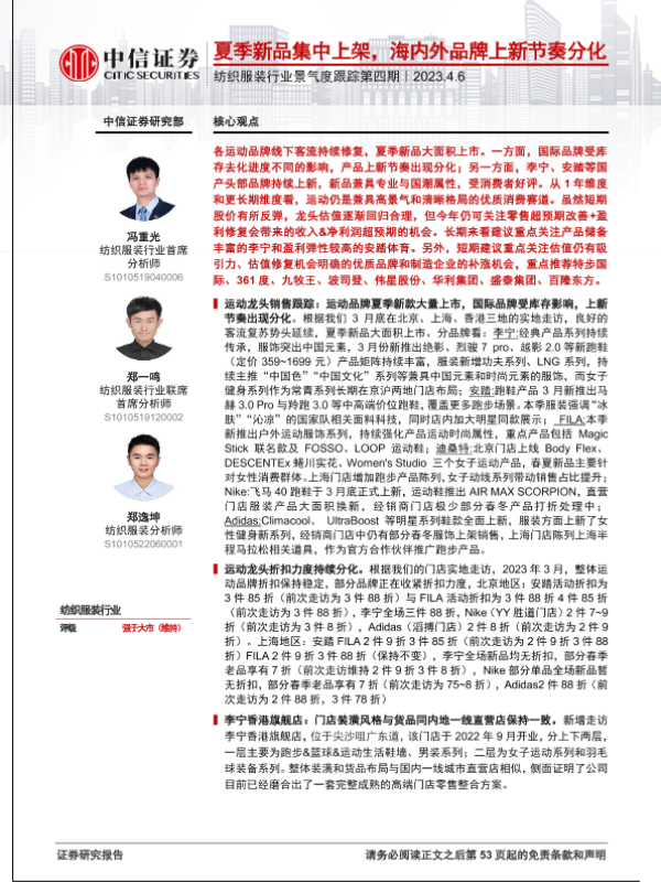 【中信证券】【20230406】纺织服装行业景气度跟踪第四期:夏季新品集中上架,海内外品牌上新节奏分化-58页