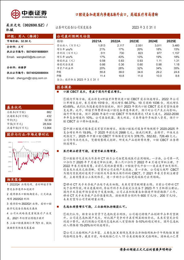 【中泰证券】【20230331】美亚光电002690.SZ口腔设备加速国内渗透&海外出口,高端医疗布局清晰-31页