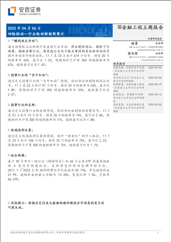 四轮驱动 投资策略 股市分析 行业轮动 金融工程