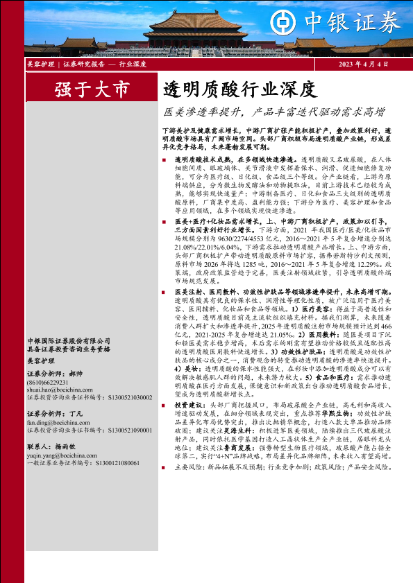 【中银证券】【20230404】透明质酸行业深度:医美渗透率提升,产品丰富迭代驱动需求高增-31页