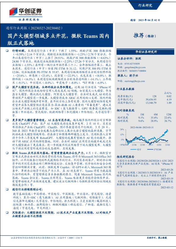 【华创证券】【20230402】通信行业周报:国产大模型领域多点开花,微软Teams国内版正式落地-20页
