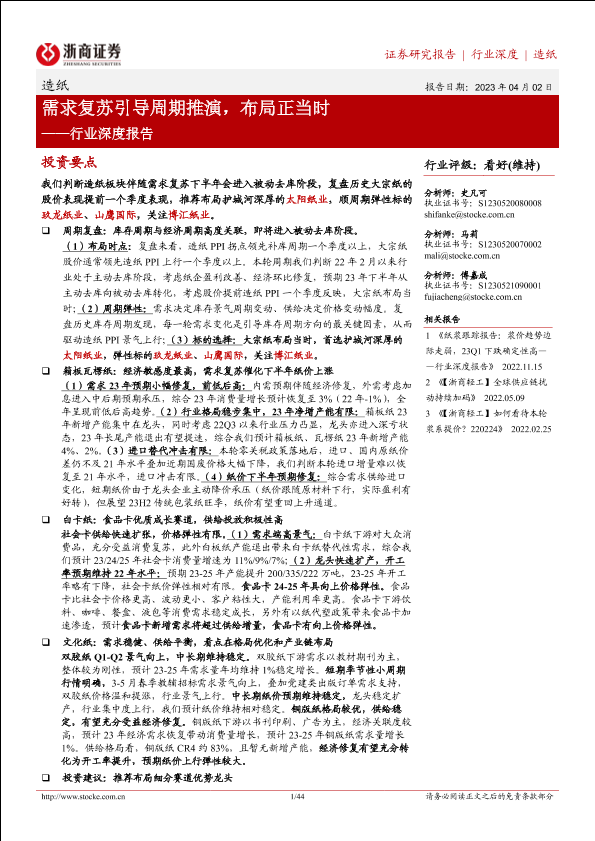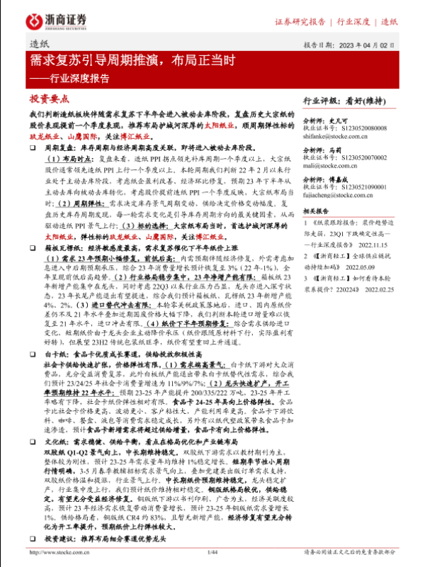 【浙商证券】【20230325】造纸行业深度报告:需求复苏引导周期推演,布局正当时-44页