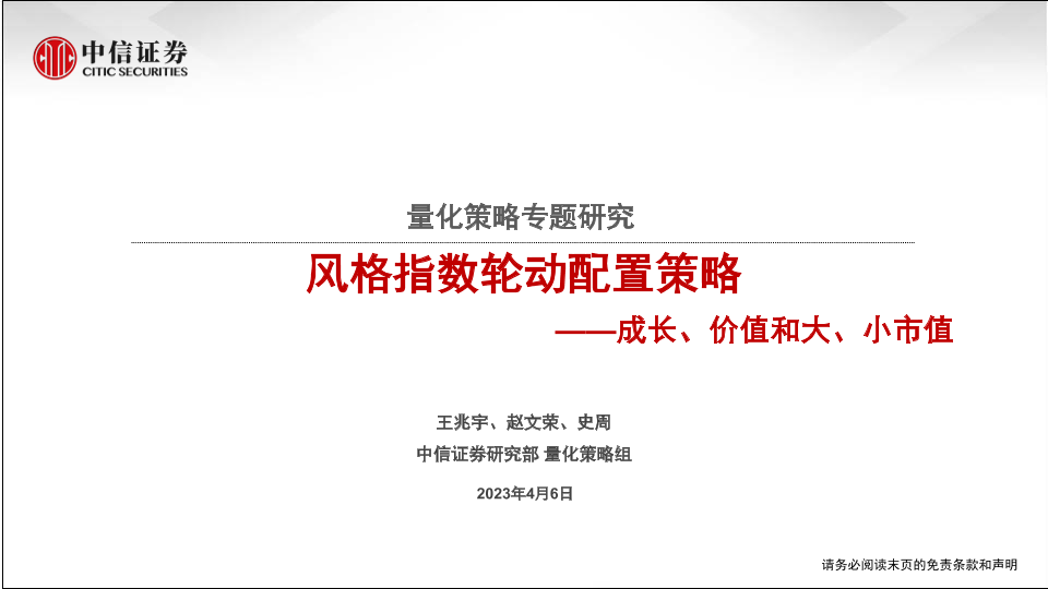 【中信证券】【20230406】量化策略专题研究:风格指数轮动配置策略,成长、价值和大、小市值-29页