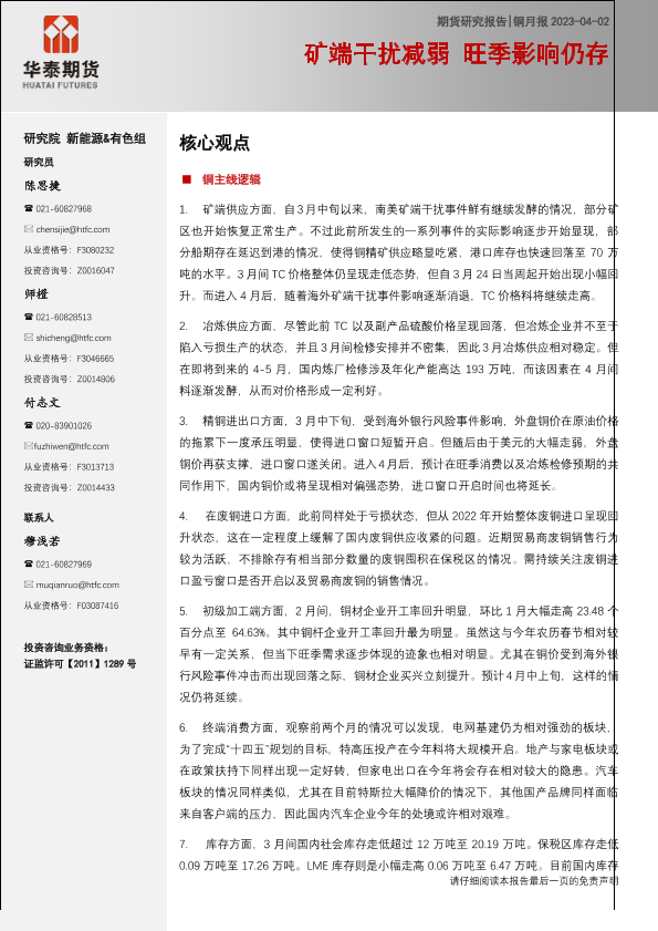 【华泰期货】【20230402】铜月报:矿端干扰减弱,旺季影响仍存-22页