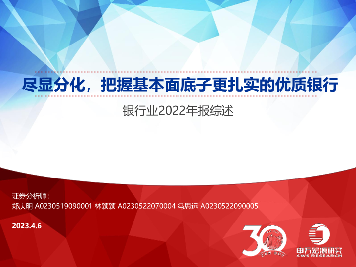 【申万宏源】【20230406】银行业2022年报综述:尽显分化,把握基本面底子更扎实的优质银行-37页