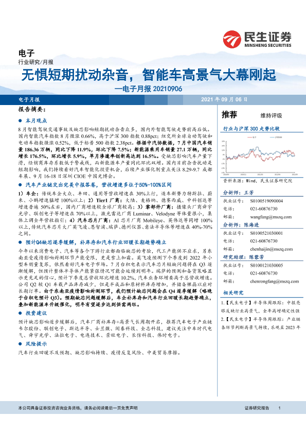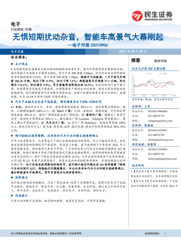 【民生证券】【20210906】电子行业月报:无惧短期扰动杂音,智能车高景气大幕刚起-27页