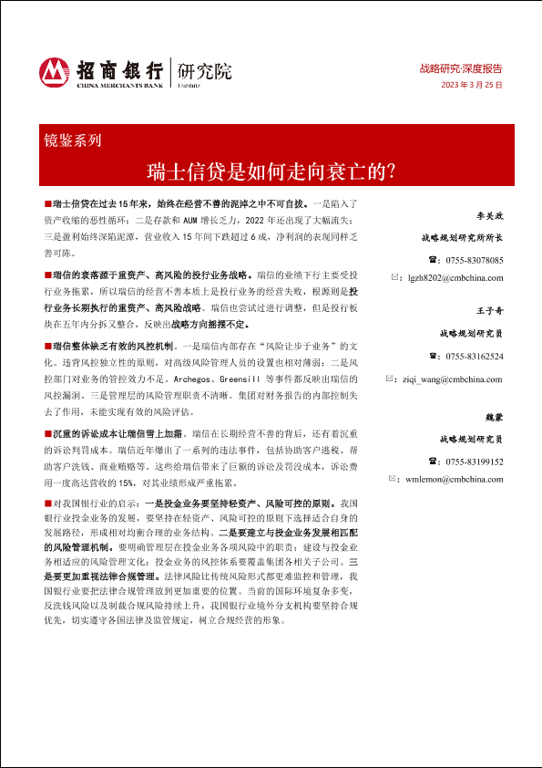 【招商银行】【20230325】瑞士信贷是如何走向衰亡的?-19页
