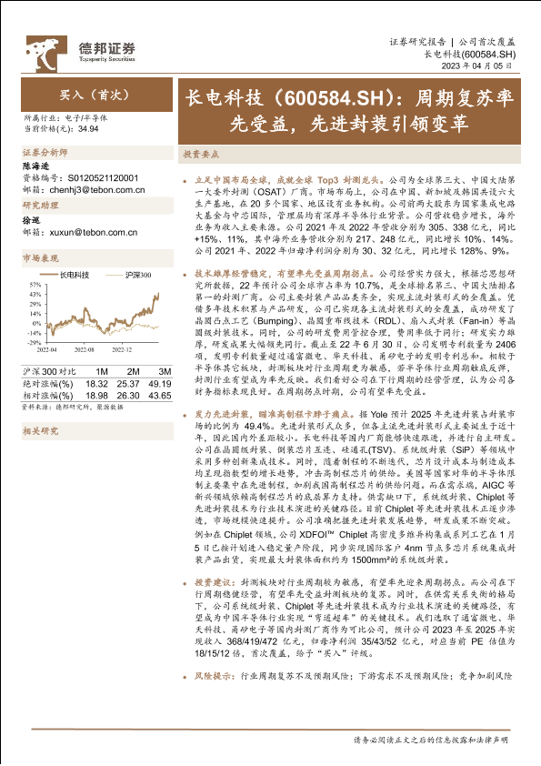 【德邦证券】【20230405】长电科技(600584)周期复苏率先受益,先进封装引领变革-21页