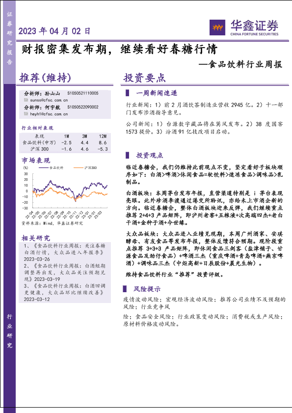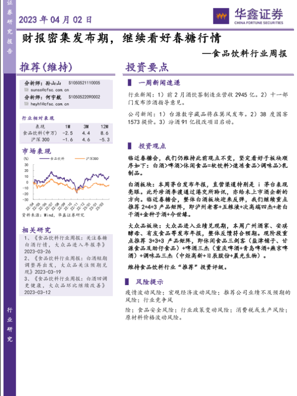 【华鑫证券】【20230402】食品饮料行业周报:财报密集发布期,继续看好春糖行情-23页