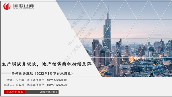 【国联证券】【20230401】高频数据跟踪(2023年3月下旬双周报):生产端恢复较快,地产销售面积持续反弹-39页