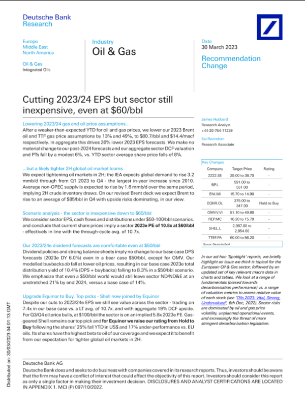 【Deutsche Bank】【20230330】Oil & Gas Cutting 2023/24 EPS but sector still inexpensive-42页