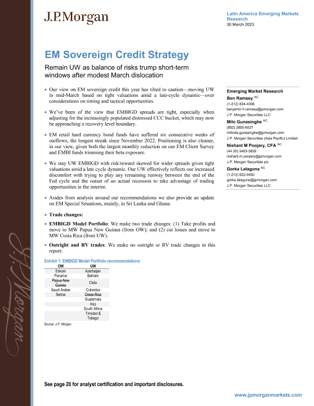 【J.P. Morgan】【20230330】EM Sovereign Credit Strategy Remain UW as balance of risks trump short-term windows after modest March dislocation-24页