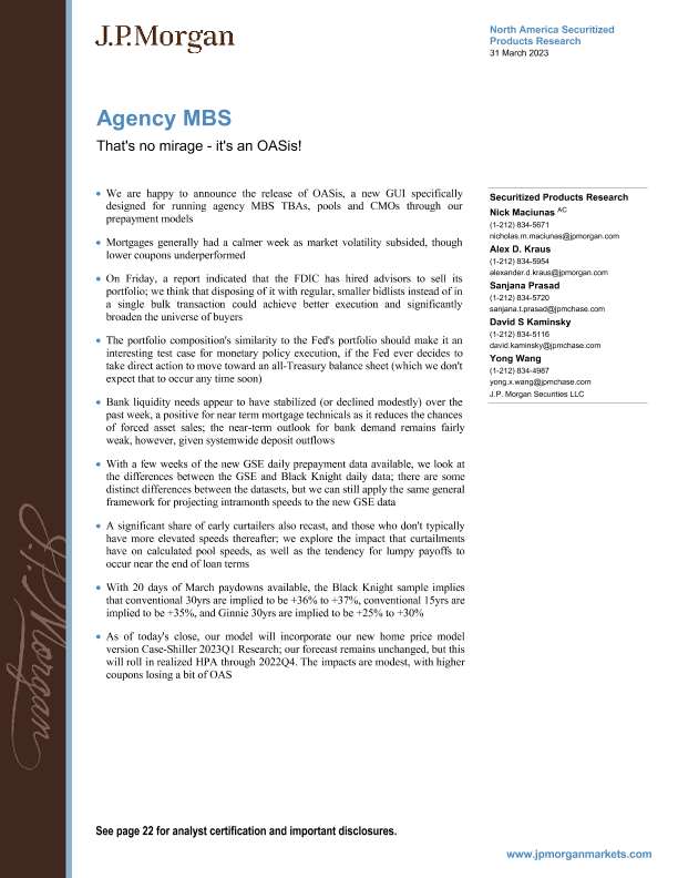 【J.P. Morgan】【20230331】JPMorgan Econ FI-Agency MBS That's no mirage - it's an OASis!-25页