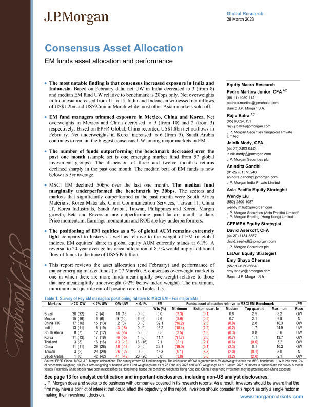 【J.P. Morgan】【20230328】Consensus Asset Allocation EM funds asset allocation and performance-18页