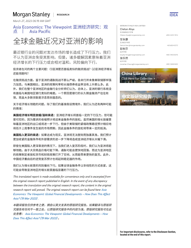 【Morgan Stanley】【20230319】亚洲经济研究:观点 全球金融近况对亚洲的影响-10页