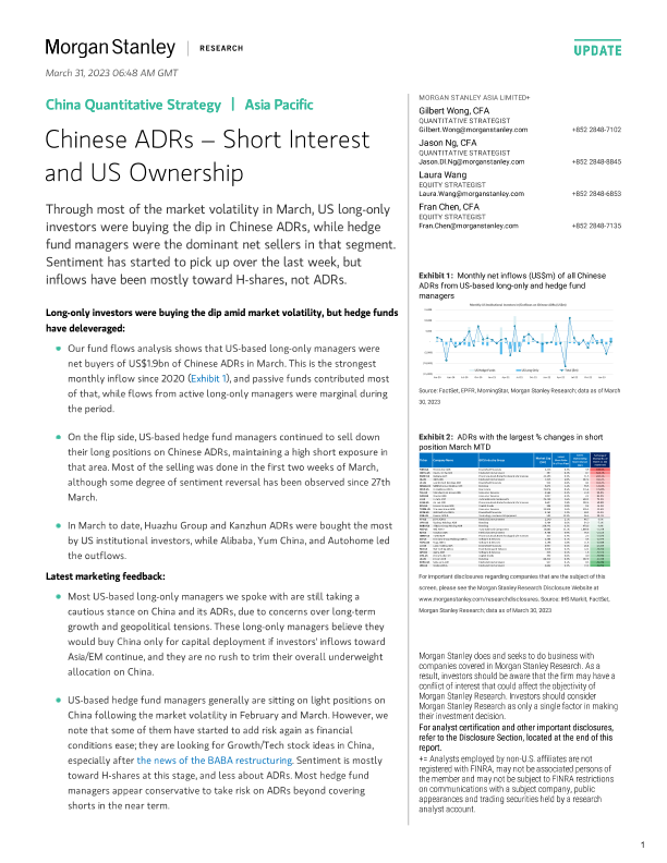【Morgan Stanley】【2023】Chinese ADRs – Short Interest and US Ownership-13页