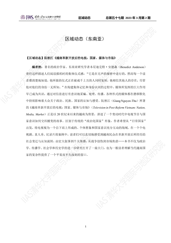 东南亚研究 国家意识 媒体与市场 社会变迁 越南电视