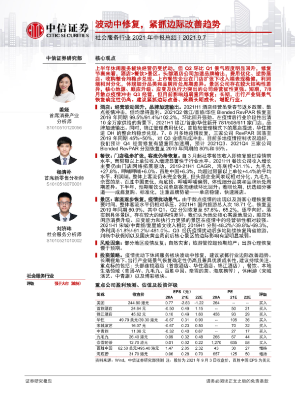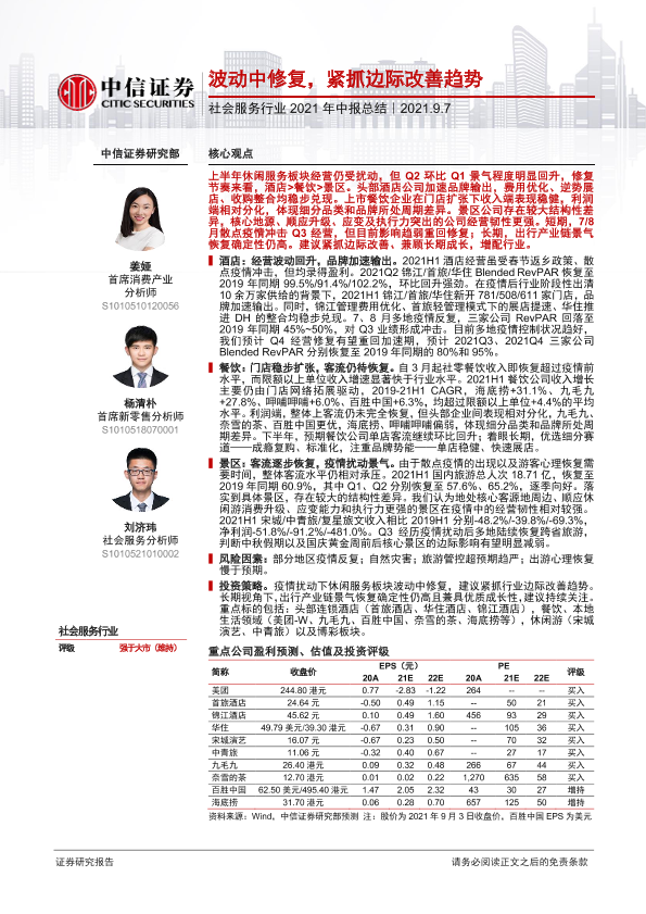 【中信证券】【20210907】社会服务行业2021年中报总结:波动中修复,紧抓边际改善趋势-23页