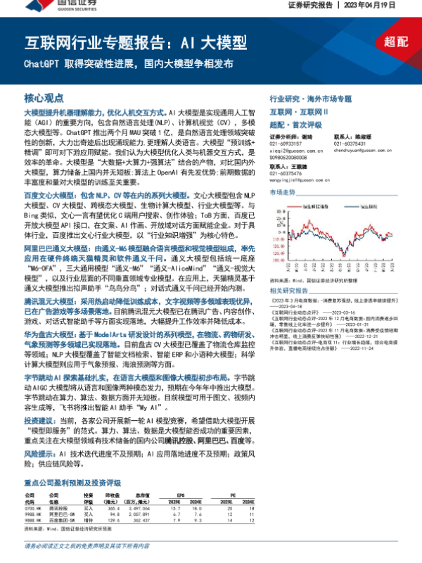 【国信证券】【20230419】AI大模型,ChatGPT取得突破性进展,国内大模型争相发布-28页