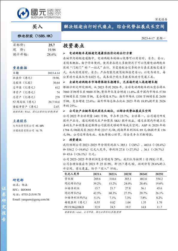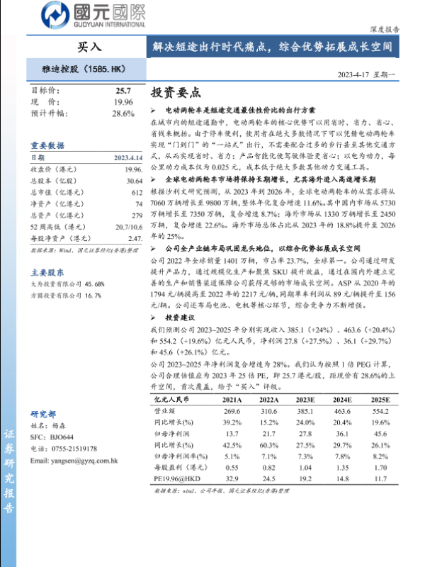 【国元国际】【20230417】雅迪控股(01585)解决短途出行时代痛点,综合优势拓展成长空间-23页