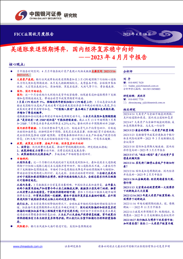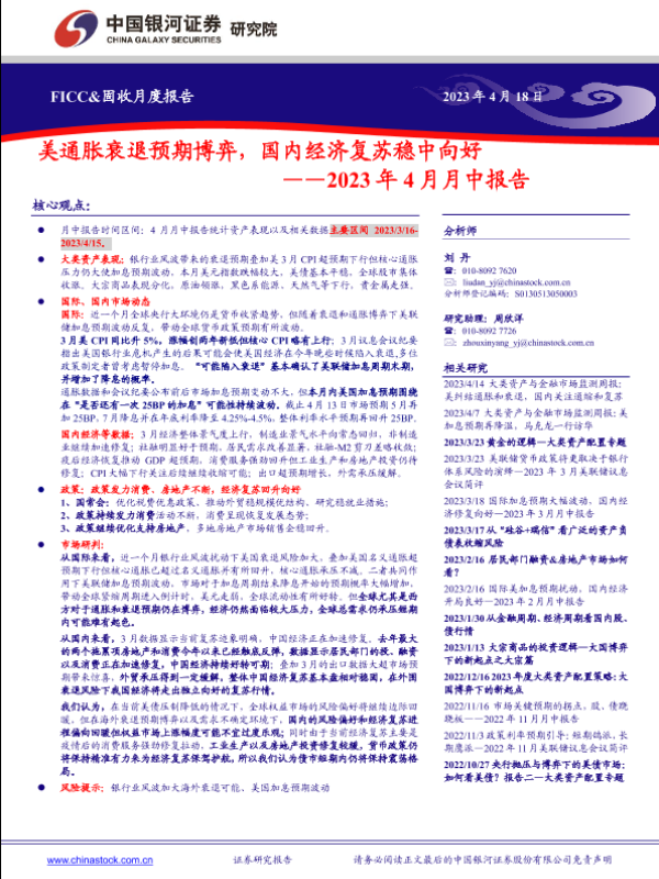 【银河证券】【20230418】2023年4月月中报告:美通胀衰退预期博弈,国内经济复苏稳中向好公司深度报-24页