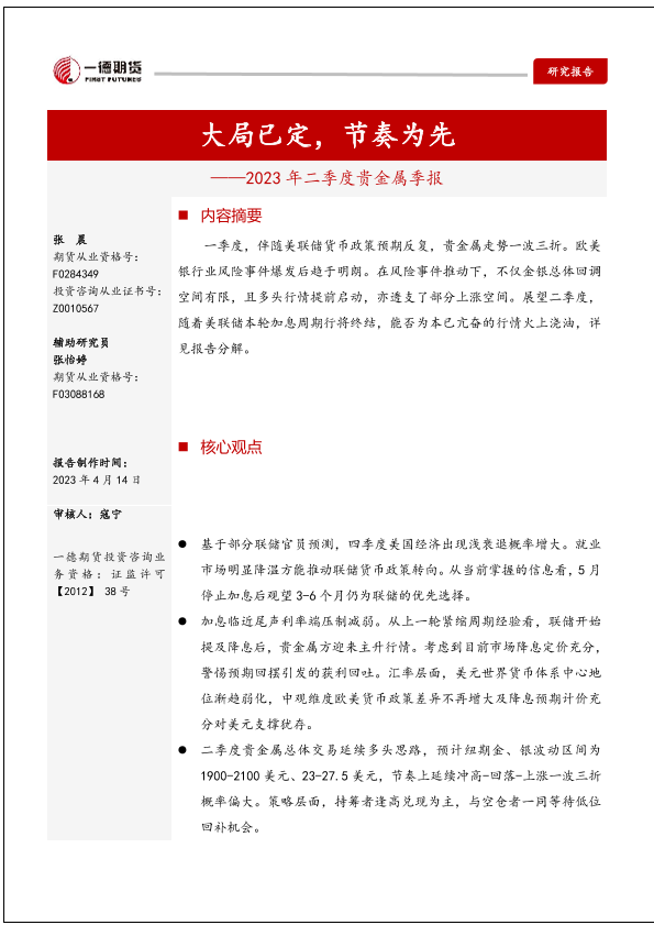 【一德期货】【20230414】2023年二季度贵金属季报:大局已定,节奏为先-16页