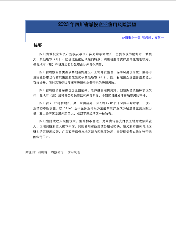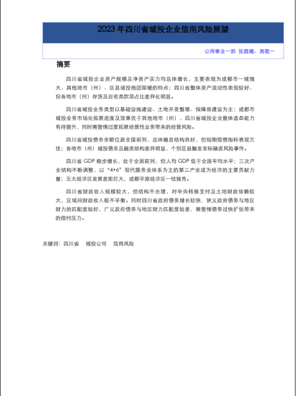 【东方金诚】【20230420】2023年四川省城投企业信用风险展望-27页