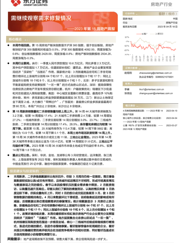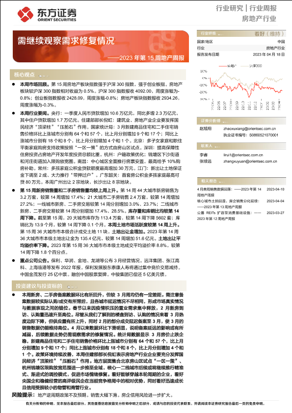 【东方证券】【20230418】2023年第15周地产周报:需继续观察需求修复情况-15页